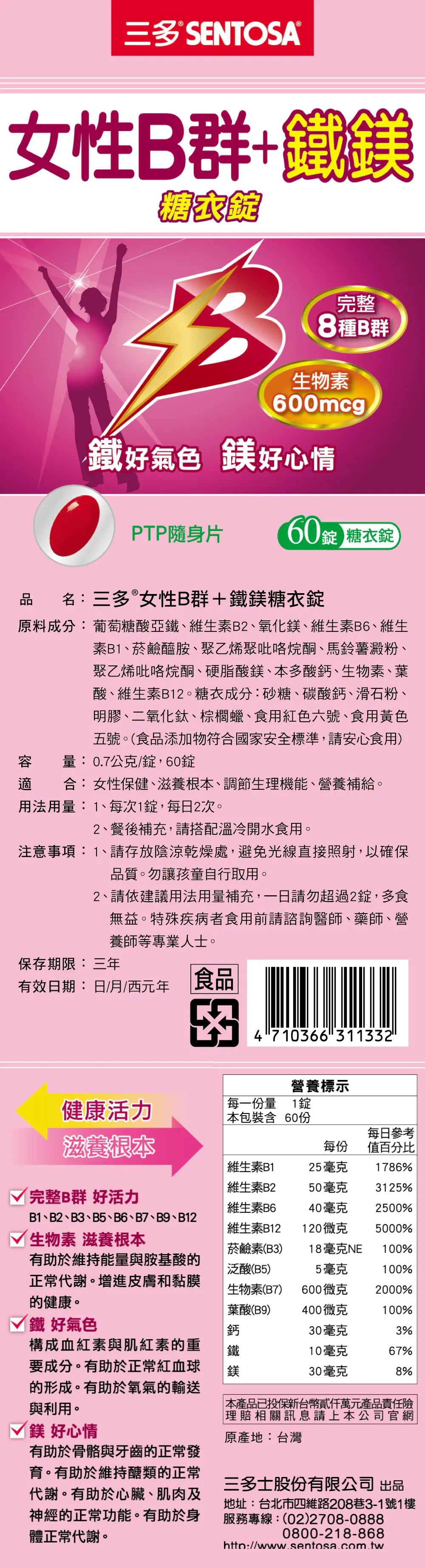 三多女性B群+鐵鎂糖衣錠60錠/24(103741/4710366311332)