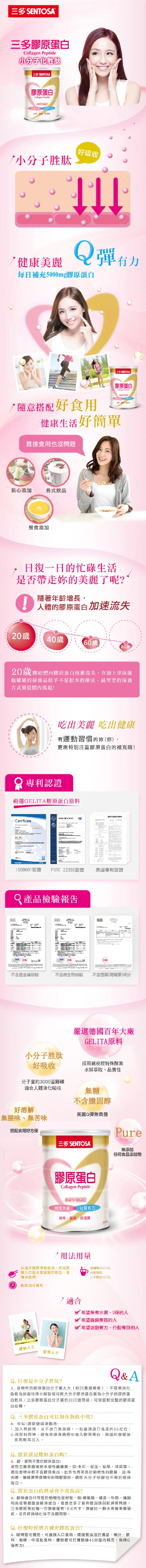 商品描述 健康美麗加分 活動更有勁 嚴選德國百年大廠GELITA膠原蛋白:採用豬皮經特殊酵素水解萃取,品質佳。 小分子胜肽,好吸收,適合人體消化吸收。 無糖、不含膽固醇